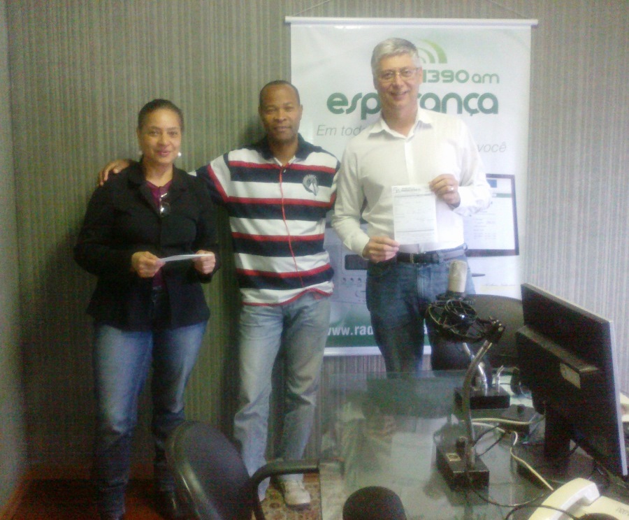 Hoje pela manhã o diretor Silvonei Benfica realizou visita aos colegas da Rádio Esperança de Porto Alegre. Em conversa com os trabalhadores um dos tópicos foi a campanha salarial, os novos convênios e a permanente sindicalização. Num bate papo bastante agradável e esclarecedor dois trabalhadores se tornaram nossos mais recentes sócios. Paulo Rogerio Gomes dos Santos e Ivanici Escolto Prestes.