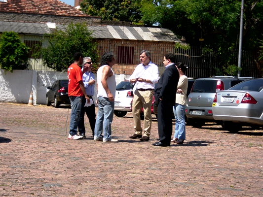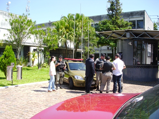 Na Band fomos surpreendidos pela presença da Brigada Militar. Cabe ressaltar que os policiais em nada interferiram e se somente assistiram ao ato. Diretores da empresa foram tirar satisfações e explicamos o motivo e a importância política do ato. Depois de um diálogo, sem enfrentamento, tivemos acesso ao interior da Band e a distribuição do material para os radialistas foi efetuada de maneira pacífica e ordeira.