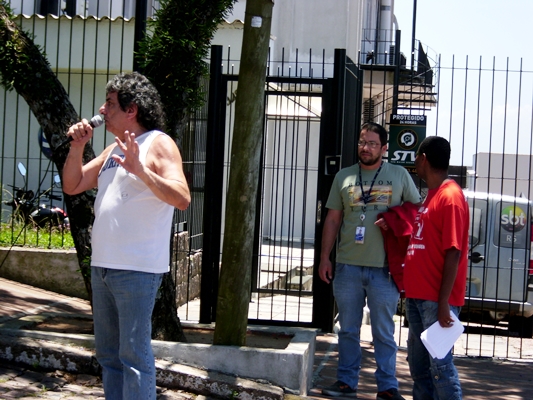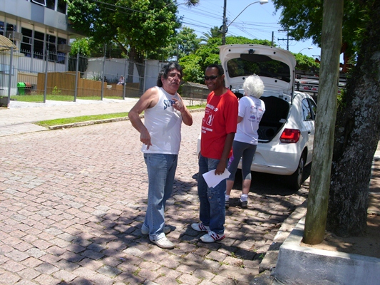 Depois da terceira rodada de negociações em que estas foram rompidas diante da já conhecida intransigência dos patrões, diretores de nossa entidade participaram de manifestações públicas frente a algumas emissoras de rádio e tv da capital.