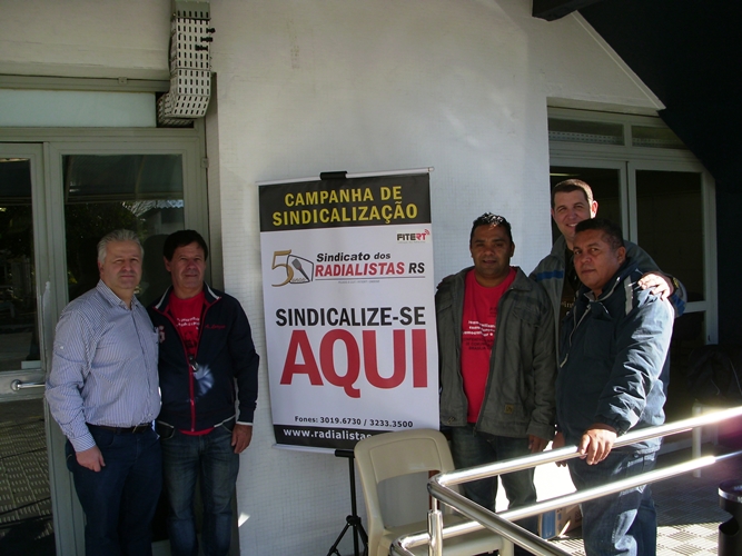Nossos diretores, mais os integrantes da Fitert que estão dando apoio à Campanha de Sindicalização, estão bastante satisfeitos com a receptividade encontrada junto aos trabalhadores da RBS. Desde ontem eles estão trabalhando nas emissoras do Grupo, localizadas no Morro Santa Tereza, divididos em dois grupos. Um está na TV e outro nas rádios. Os companheiros da Rádio Gaúcha não foram esquecidos não, e terão uma outra data, ainda a ser agendada, para integrarem a Campanha.