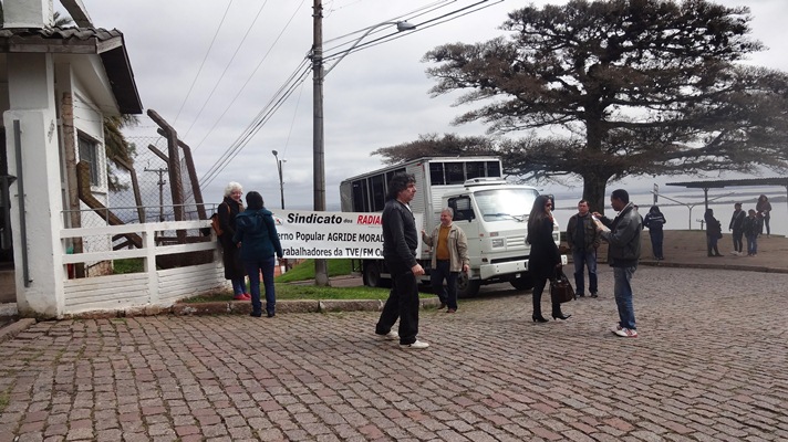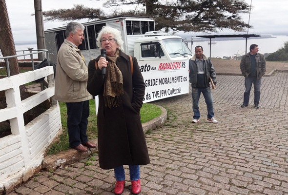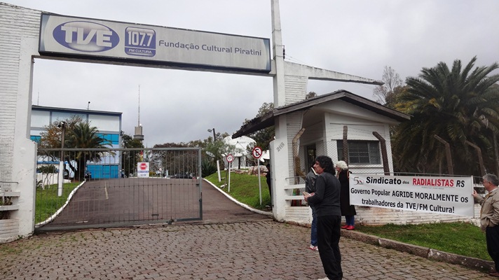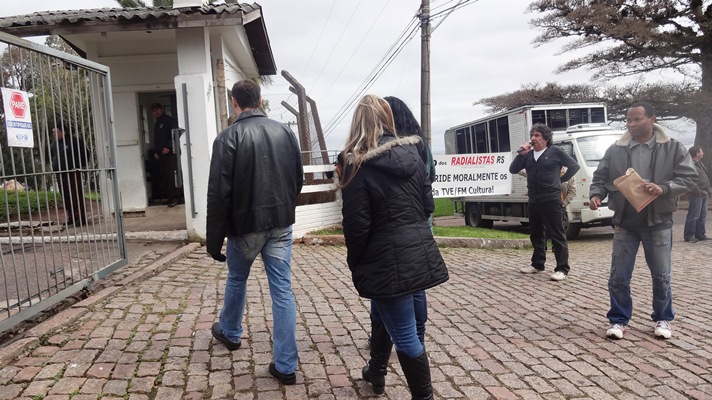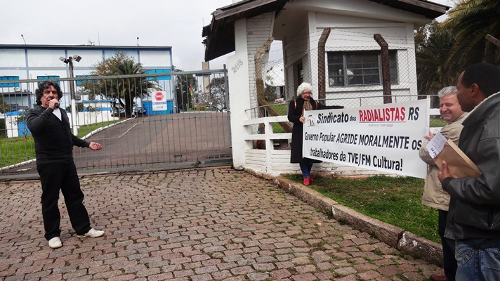 A direção do Sindicato dos Radialistas do RS realizou na tarde dessa quinta-feira (15/08) uma manifestação em frente à Fundação Cultural Piratini – Rádio e Televisão. Eles protestaram contra a forma antidemocrática com que vem sendo conduzido o Plano de Empregos, Funções e Salários da Fundação que penaliza a categoria dos radialistas. A comissão de funcionários e os delegados sindicais dos Radialistas e dos Jornalistas não participaram da elaboração da nova proposta do plano que prevê a extinção do quadro atual e cria um novo plano para abrigar os servidores que serão contratados no próximo concurso.