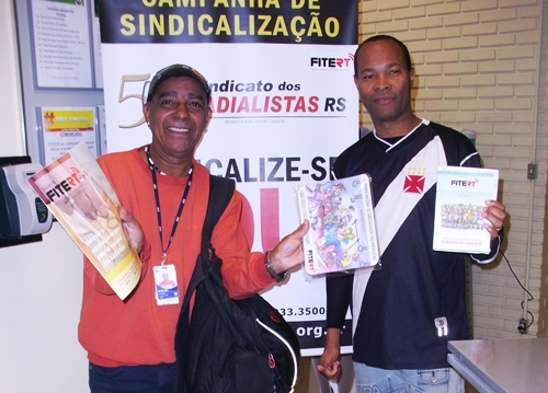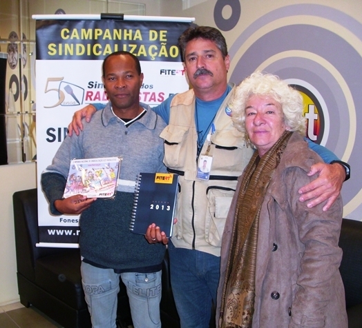 A exemplo do ocorrido em outras emissoras de Porto Alegre, como Rede Pampa, Rede Record e Rádio Guaíba, hoje os companheiros do SBT receberam a visita de nossos diretores, em Campanha de Sindicalização. Participaram o Elto, a Gilca, o Silvonei e o Renato Vilela (Coruja) que aproveitaram essa oportunidade para contatar diretamente com a base da emissora. Eles distribuíram material da Federação e de um copo tubo comemorativo aos 50 anos de nossa entidade. Na quinta-feira (20) eles marcaram presença na TVE.