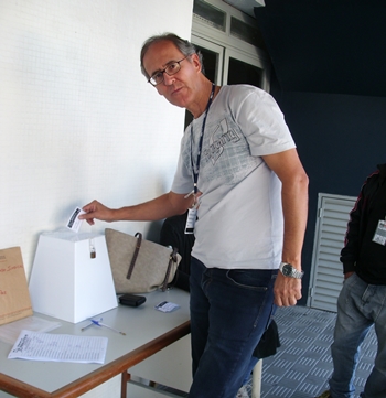O radialista Marco Aurélio Paz da Silva foi eleito ontem (18), delegado sindical da TVCOM. Sua responsabilidade é grande diante da confiança que lhe foi depositada e materializada através dos votos conquistados, pois alcançou com 100% dos votos válidos. Temos certeza de que ele desenvolverá um ótimo trabalho. Na condução do processo eleitoral estiveram atuando os diretores Silvonei Benfica, Everton da Silva Quadros, Gilca Nunes, Caetano Fontes Abreu, Karl Bulhões e Elto Basei.