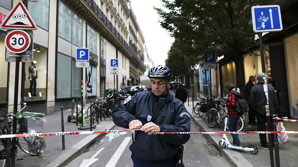 Polícia reforça segurança nos arredores da sede do jornal Libération, em Paris (Crédito: Kenzo Tribouillard/AFP)