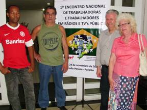 Já recebemos as primeiras fotos do 1º Encontro Nacional das Trabalhadoras e Trabalhadores em Rádios e TVs Públicas que está acontecendo em João Pessoa, na Paraíba, na qual participam nossos diretores Caverna, Silvonei, Elto e Gilca. Ontem ocorreu a cerimônia de abertura, seguida de um coquetel. Hoje, a partir das 9 horas a discussão abordou Rádios e TVs públicas: o que é comunicação pública, cujos expositores pertenciam a ARPUB; ABEPEC e ASTRAL.