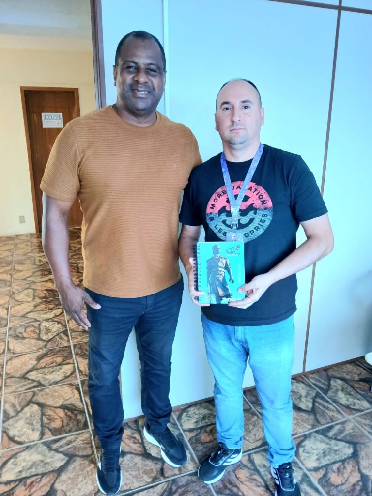 A sequência da visita foi realizada na Rádio Oceano FM 97.1 onde em uma boa conversa com os colegas, nossos diretores também foram entrevistados pelo Marcão e efetuaram a entrega da agenda 2025.