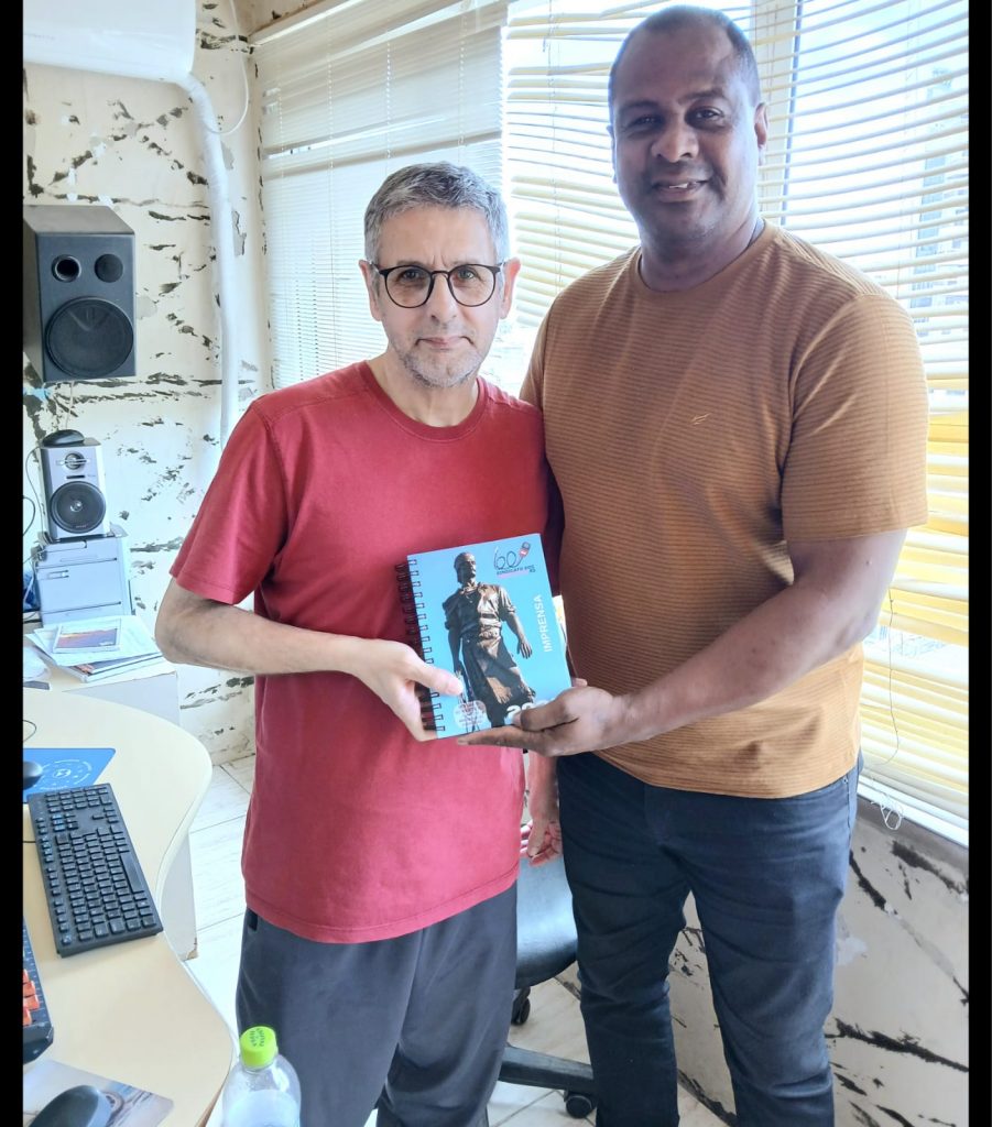 O Trabalho desenvolvido pelos diretores do Sindicato dos Radialistas nesta terça-feira dia 10 de dezembro foi muito intenso, o Vice-Presidente Silvonei Benfica acompanhado do Diretor Hélio Bittencourt, estiveram na região do Vale dos Sinos onde entre tantas visitas realizadas estiveram na Rádio ABC 103.3 FM com o colega Cláudio Brito oportunidade em que também foi efetuada a entrega da agenda 2025 para ele.