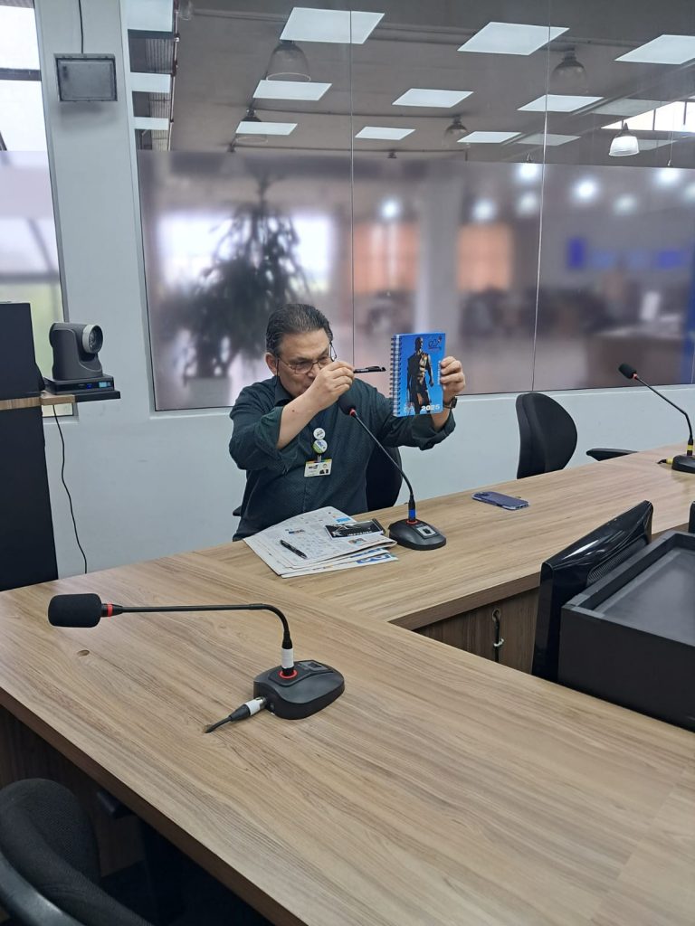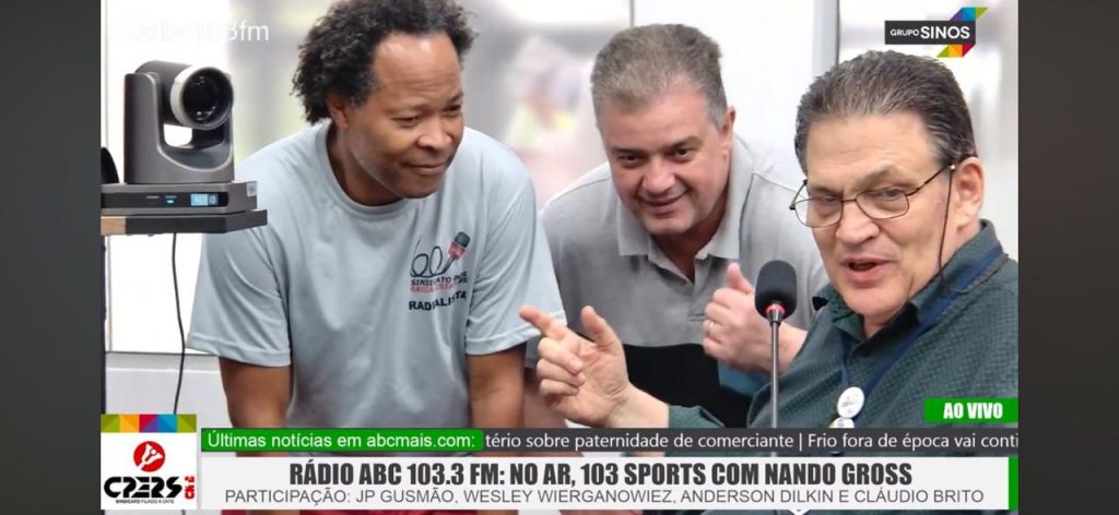 Como informamos ontem, os diretores do Sindicato dos Radialistas, estiveram nesta terça-feira passada dia 10 de dezembro conversando com os colegas da região, o Vice-Presidente Silvonei Benfica acompanhado do Diretor Hélio Bittencourt, estiveram na Rádio ABC 103.3 FM com o colega Cláudio Brito oportunidade em que também foi efetuada a entrega da agenda 2025 para ele.