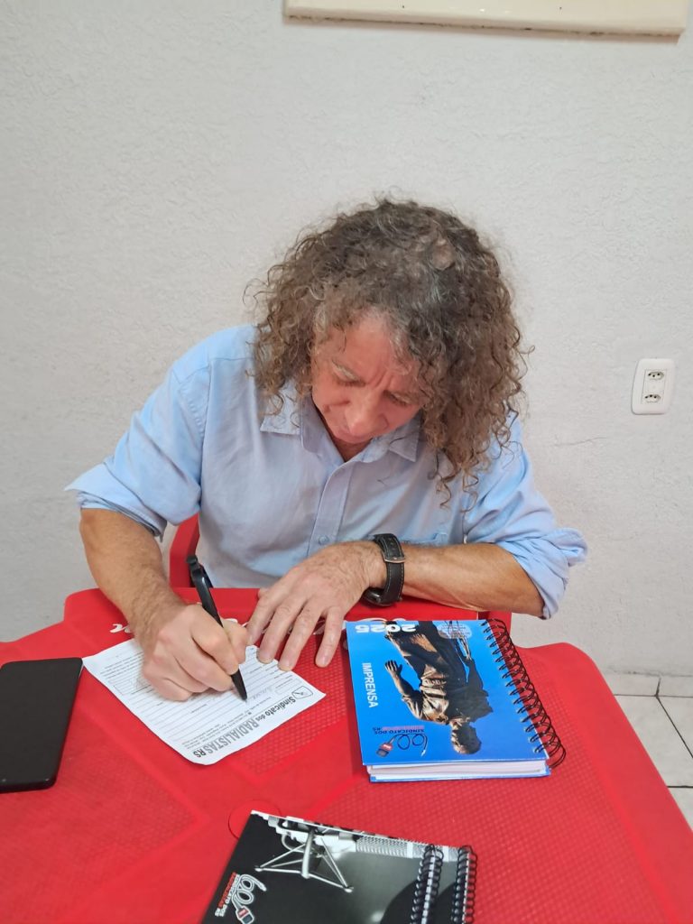 Ainda no final de tarde, o Vice-Presidente do Sindicato Silvonei Benfica, esteve reunido com o colega Jaime Robiley que é funcionário da Rádio Caxias e após uma boa conversa ele voltou a ser sócio do Sindicato dos Radialistas.