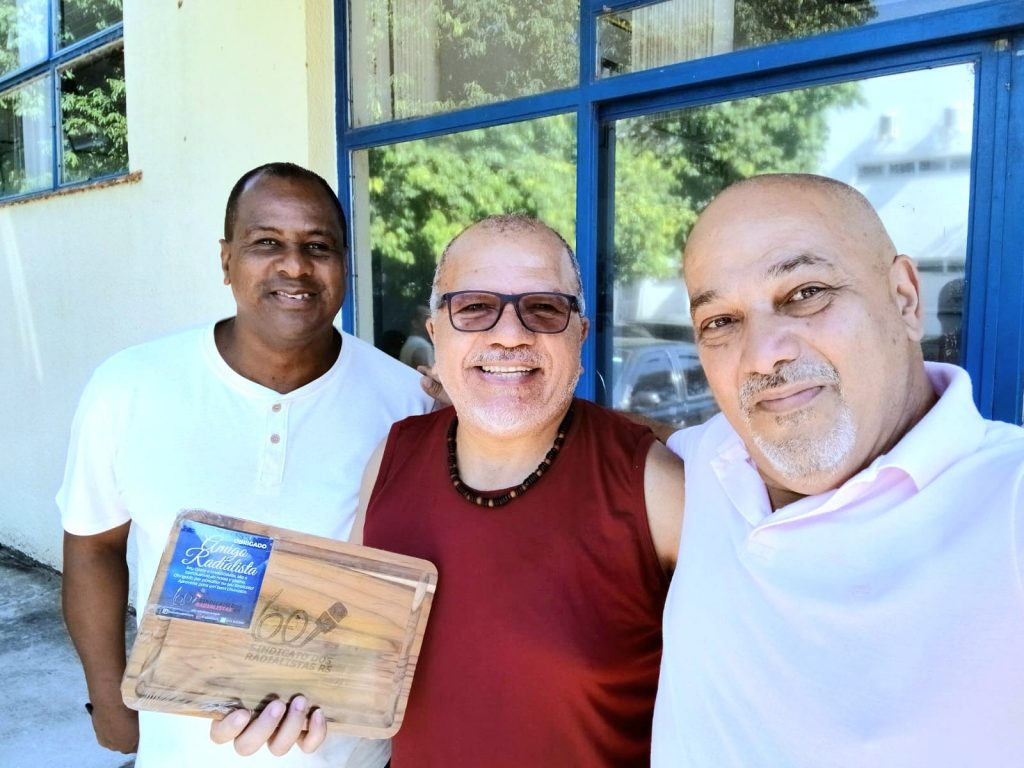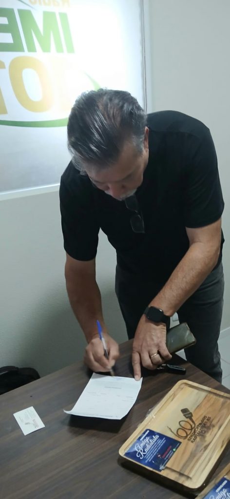 Após conversar com os colegas da UFSM, os diretores seguiram para a Rádio Imembuí FM 101.9 e para a Rádio Nativa FM 99.5, onde foram recebidos pelo colega radialista e Diretor do Sindicato Diego Fachini, na oportunidade foi efetuada a entrega de uma lembrança do Sindicato dos Radialistas para os sócios e após uma boa conversa onde os colegas reafirmaram o a confiança no trabalho desenvolvido pela direção do Sindicato, como resultado desta conversa, os diretores tiveram a oportunidade de conquistar um novo sócio para o Sindicato o Radialista e Vereador Valdir Oliveira, para quem desejamos boas-vindas.