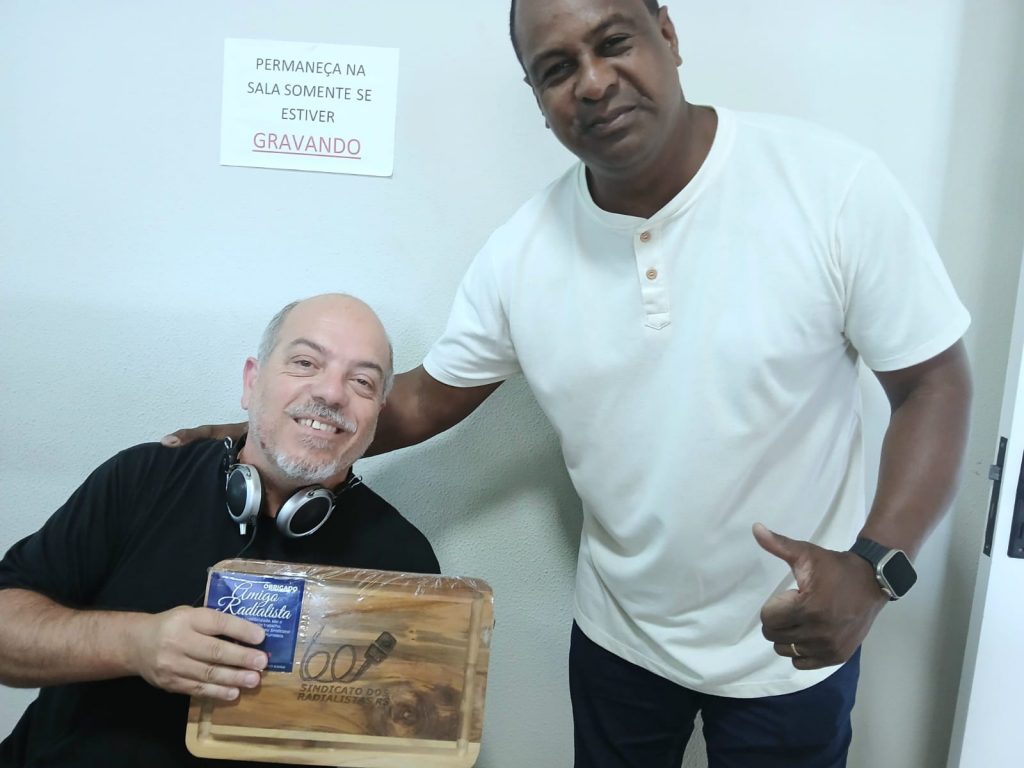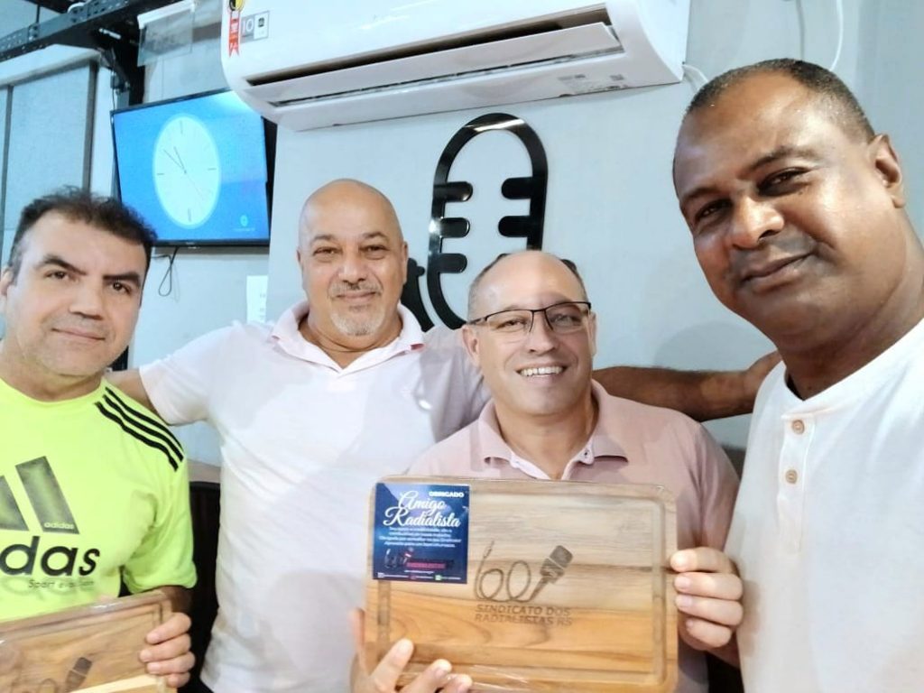 DIRETORES DO SINDICATO DOS RADIALISTAS DO RS, VISITAM COLEGAS NAS EMISSORAS DA CIDADE DE SANTIAGO.