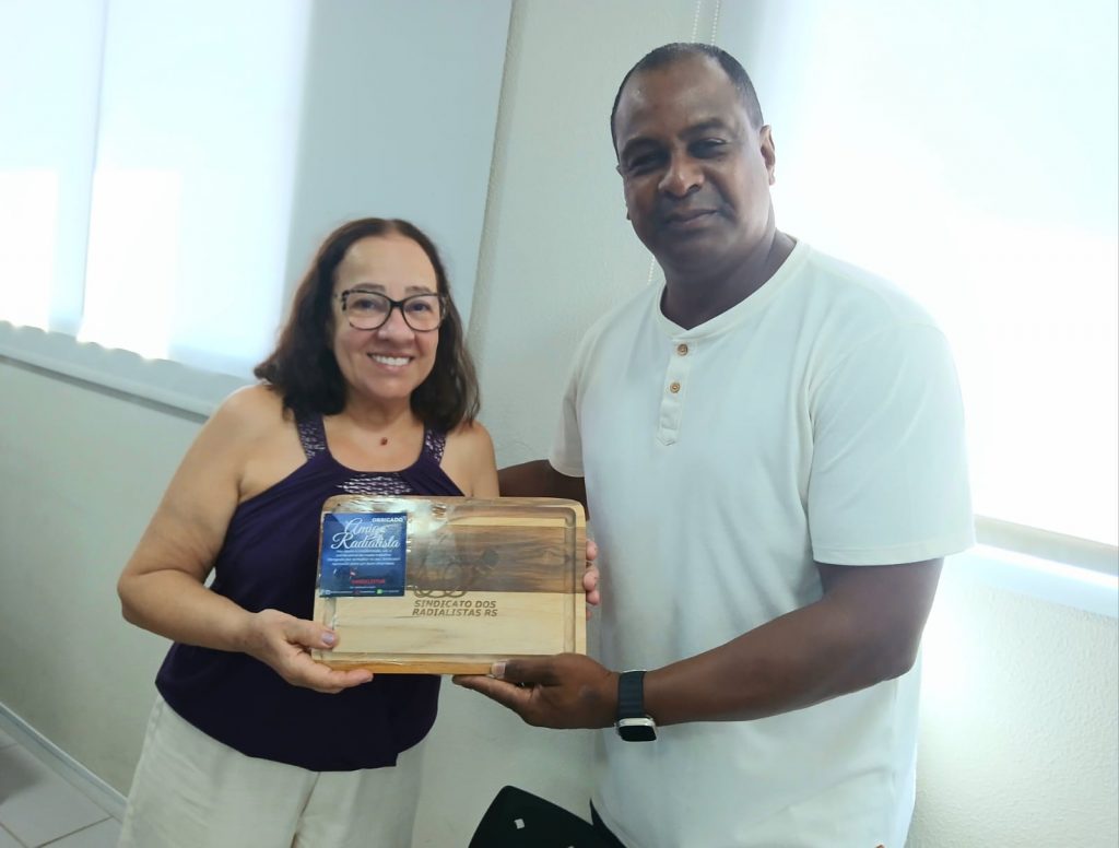 Para finalizar o dia de trabalho, os diretores também estiveram na residência do colega e radialista Dinarte Lopes, oportunidade que também foi efetuada a entrega da lembrança do Sindicato.