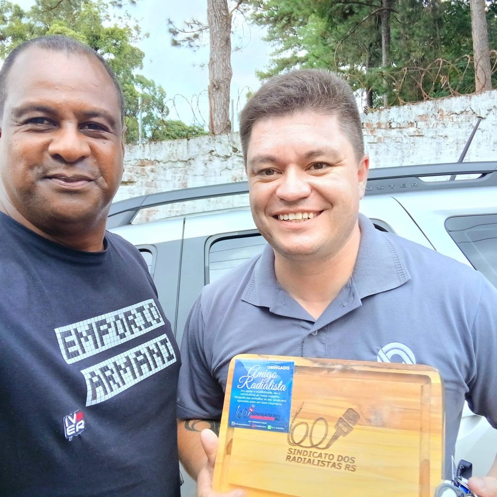 Ainda, para finalizar o trabalho em Santa Maria, o Diretor e Tesoureiro Daniel Braga, esteve com os colegas Martin (RBS) e com o colega e radialista Paulo, também efetuando a entrega da lembrança do Sindicato.