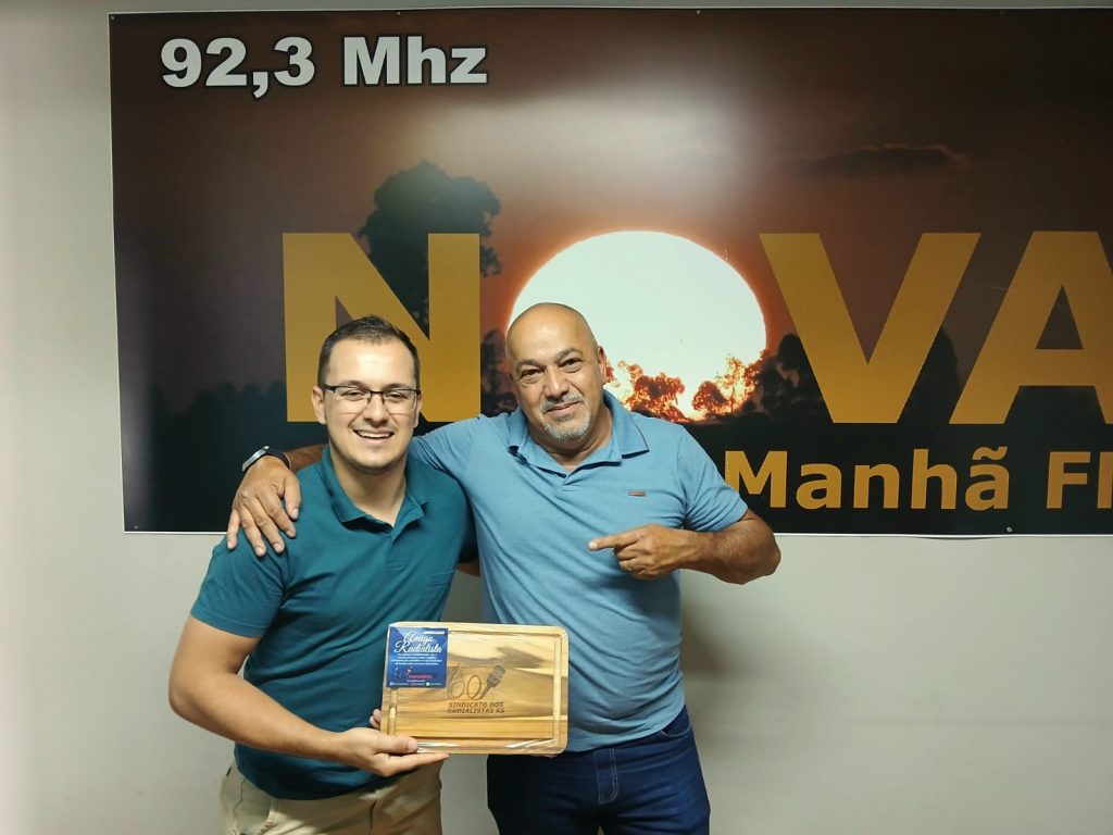Nesta quinta-feira dia 27 de fevereiro, o Presidente do Sindicato dos Radialistas do RS Ricardo Malheiros, acompanhado do Diretor e Tesoureiro Daniel Braga, estiveram na cidade de São Vicente do Sul para visitar os colegas radialistas, a visita foi realizada na Rádio Nova Manhã 92.3 FM, onde foram muito bem recebidos pelo colega radialista e gerente da emissora o Fábio e também pelo colega Neri, os diretores aproveitaram para efetuar a entrega da lembrança do Sindicato destinada para os sócios e importante dizer que na Rádio Nova Manhã 92.3 FM, 100% dos colegas radialistas são sócios do Sindicato.