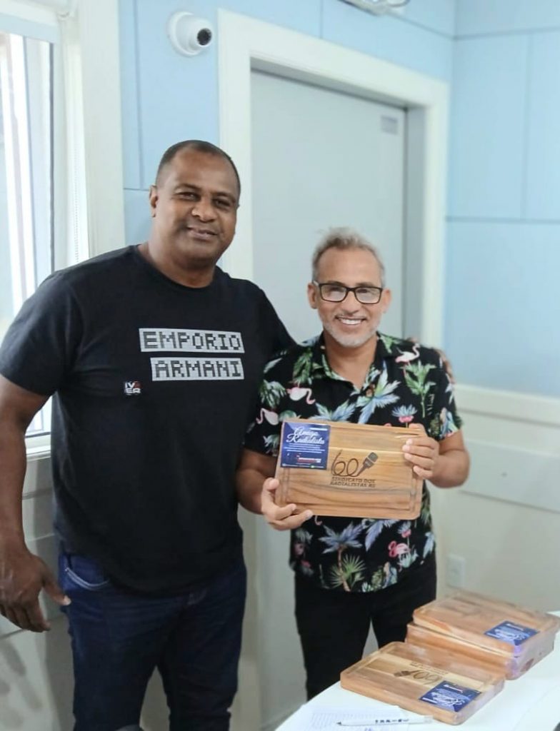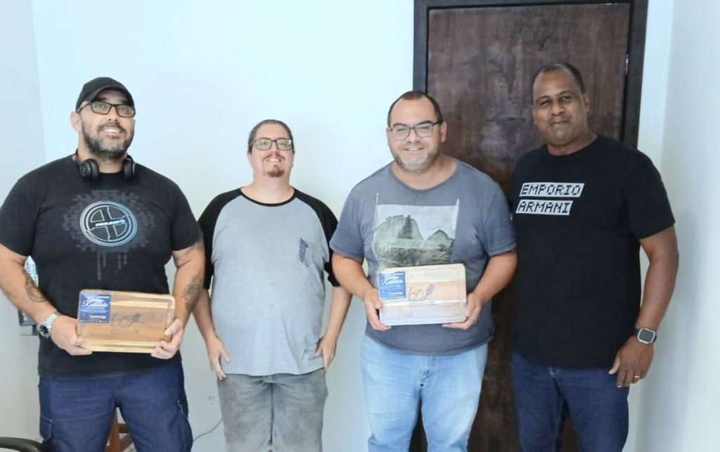 Ainda na sequência das visitas, os diretores estiveram na Rádio Rede Aleluia FM 92.5, onde também foram muito bem recebidos pelo Pastor Maurício Vaz, efetuaram entrega da lembrança que foi confeccionada exclusivamente para os sócios do Sindicato, após, os diretores seguiram para a Rádio Nativa Zona Sul 104.7 FM e para finalizar, o trabalho, foram na Rádio FURG 106.7 FM onde também foram muito bem recebidos pelos colegas e assim como na Rede Aleluia e na Rádio Nativa Zona Sul, também efetuaram a entrega da lembrança que foi confeccionada exclusivamente para os sócios do Sindicato.