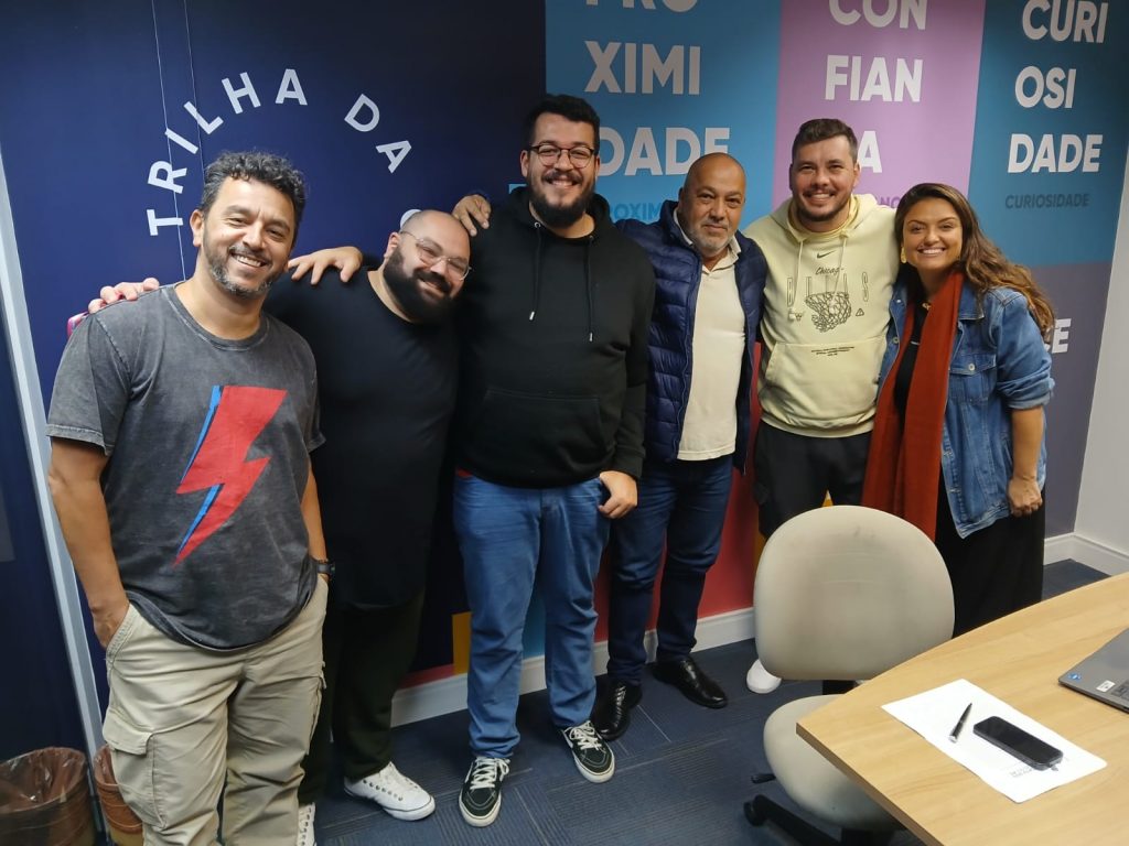 PRESIDENTE DO SINDICATO DOS RADIALISTAS DO RS, REUNIDO COM COLEGAS DO PRETINHO BÁSICO DA RÁDIO ATLÂNDIA FM.