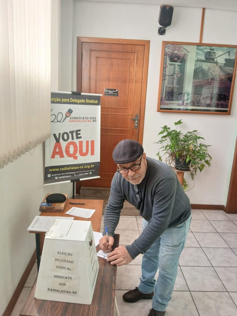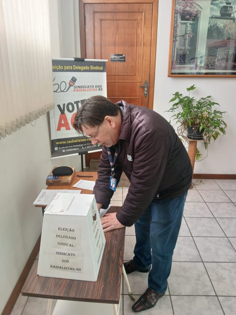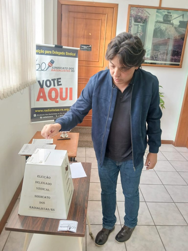 Nesta terça-feira dia 20 de maio, o Vice-Presidente Silvonei Benfica, acompanhado do Diretor e Tesoureiro Daniel Braga e do Diretor Everton Quadros, realizaram o pleito eleitoral para escolha de delegado(a) sindical na Rádio Minuano FM na cidade do Alegrete.