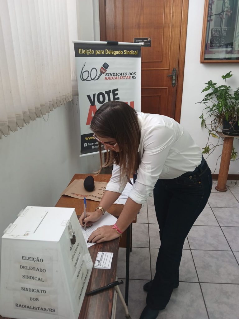 Com o término do pleito eleitoral, tivemos a colega Lisiane Becom Menezes dos Santos, eleita como delegada Sindical de forma unânime dos votos da emissora, para representar o Sindicato junto aos colegas na Rádio Minuano FM.
