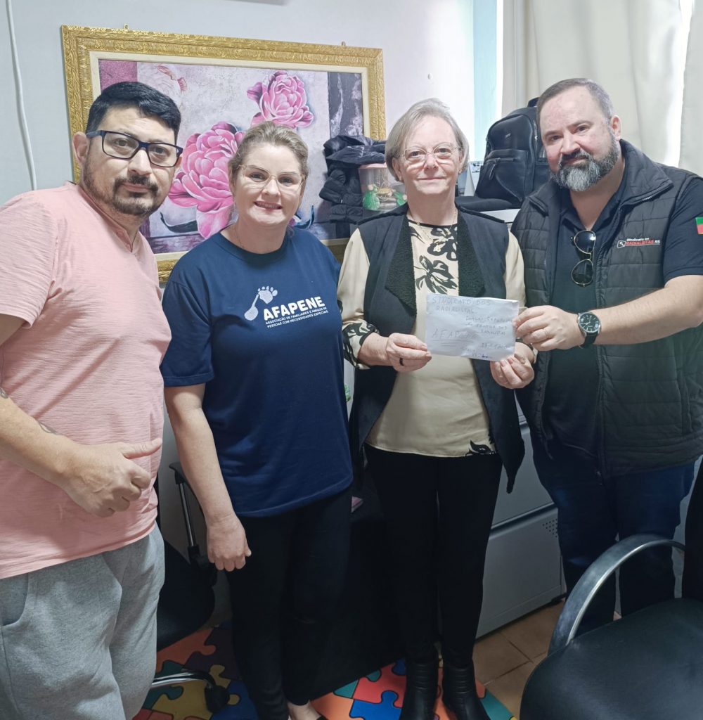 Na tarde desta quarta-feira (16), o diretor da Regional Santa Rosa do Sindicato dos Radialistas do Rio Grande do Sul, José Henrique Rodrigues, acompanhado da equipe da JF Eventos, realizou a entrega oficial de um repasse no valor de R$ 2.200,00 à Associação de Familiares e Amigos de Pessoas com Necessidades Especiais (AFAPENE).