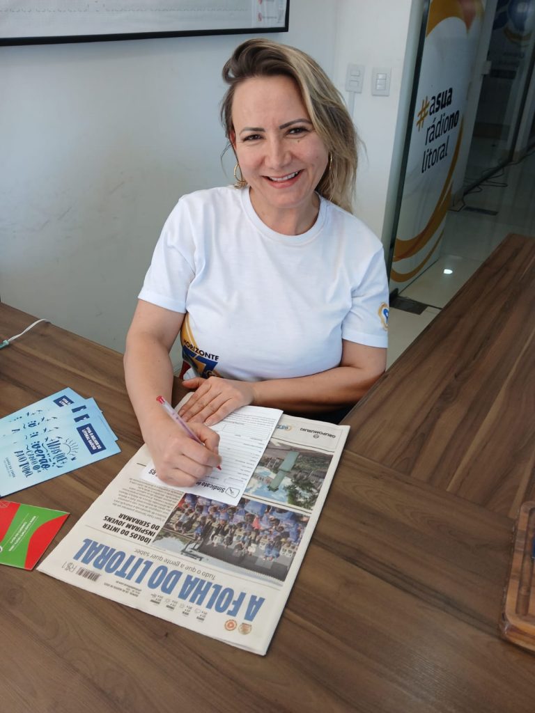 Dando seguimento ao roteiro no litoral, os dirigentes visitaram a Rádio Horizonte 95.7 FM, onde dialogaram com os radialistas Cinara e Alex. Durante o encontro, também foi efetivada a filiação de uma nova sócia, a colega Viviane, que foi oficialmente recebida na entidade.