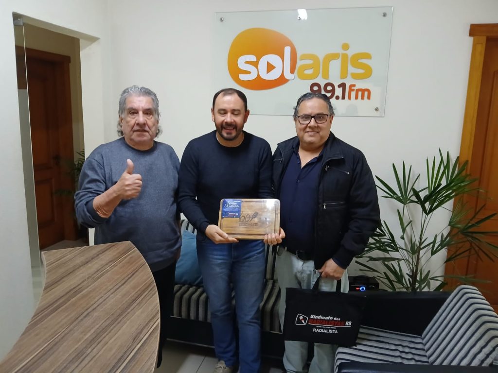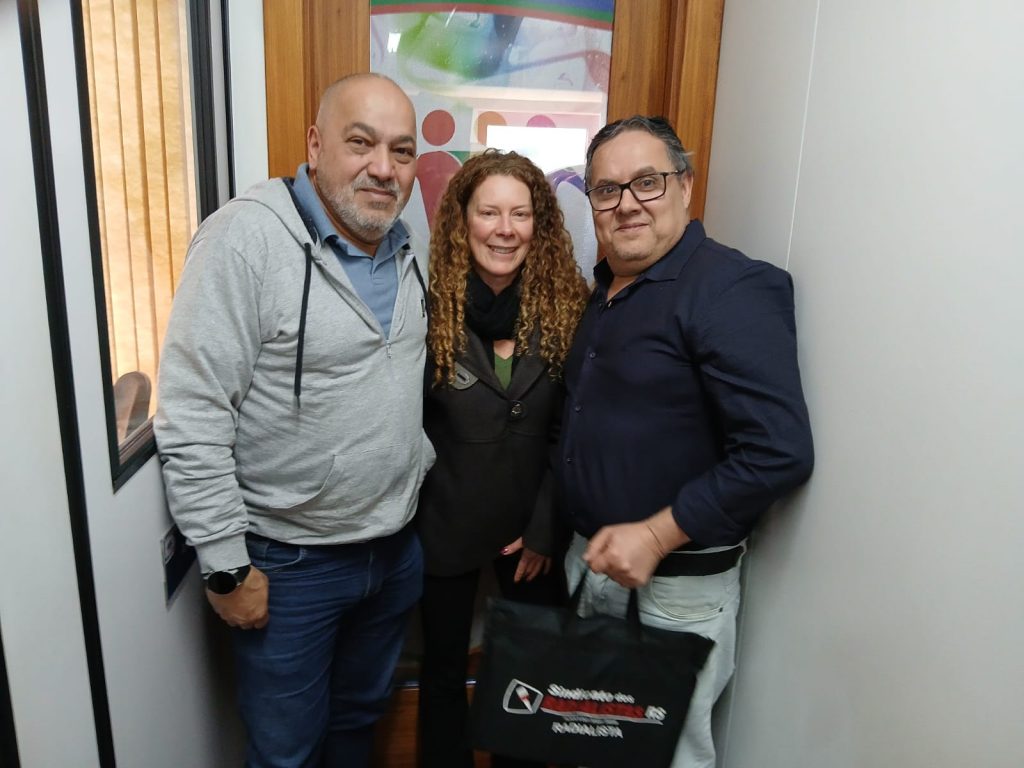 Enquanto isso, na Serra Gaúcha, o presidente do Sindicato, Ricardo Malheiros, esteve acompanhado pelo representante da Federação, Antonio Edisson Peres (Caverna), e pelo diretor regional de Caxias do Sul, Antonio Carlos Leal. O grupo visitou a Rádio Diplomata FM 100.3, em São Marcos, e, posteriormente, seguiu para Flores da Cunha, onde estiveram na Rádio Solaris 99.1 FM e na Rádio Amizade 89.1 FM.