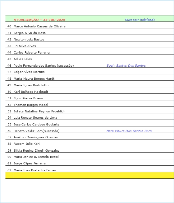 Abaixo, segue a listagem dos 62 colegas que poderão receber o valor nesta data marcada.