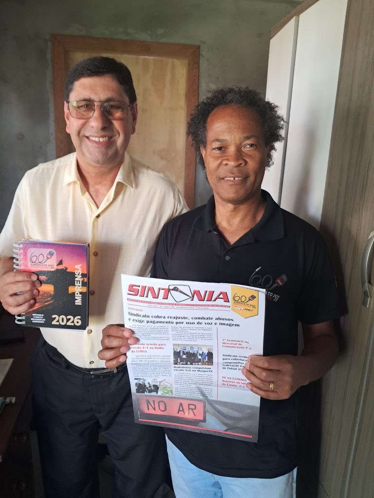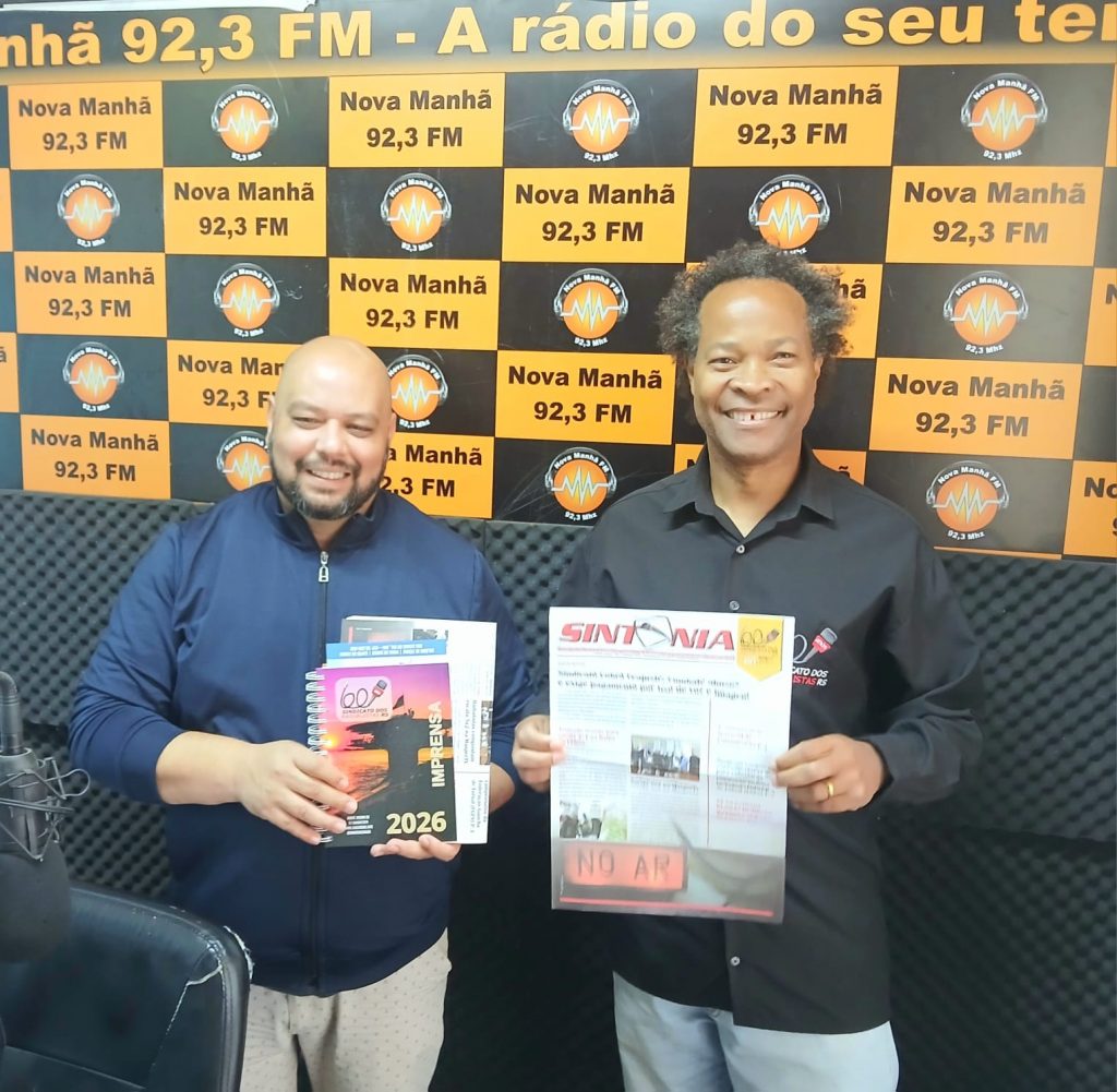 Durante a visita, o Vice-Presidente Silvonei Benfica e o Diretor Daniel Braga, entregaram o informativo Sintonia e a Agenda 2026, produzida exclusivamente para os associados. As atividades ocorreram na Rádio São Vicente FM 106.3 e na Rádio Nova Manhã FM 92.3.