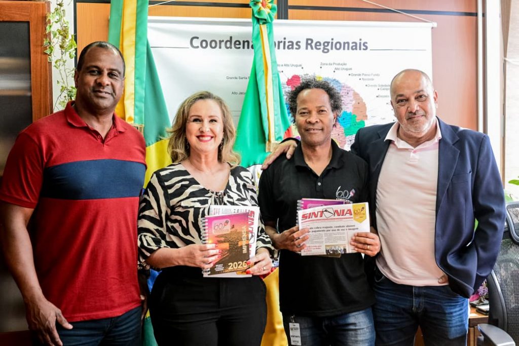 Nesta quarta-feira, 19 de novembro, dirigentes do Sindicato dos Radialistas do Rio Grande do Sul estiveram na Assembleia Legislativa para uma reunião com a deputada estadual Patrícia Alba (MDB). Participaram do encontro o Presidente da entidade, Ricardo Malheiros, o Vice-Presidente Sinvonei Benfica e o Diretor e Tesoureiro Daniel Braga.