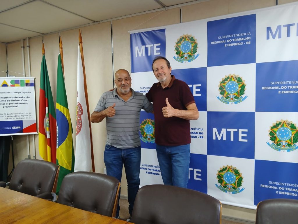 Na sequência, após a reunião no Departamento Jurídico, o Presidente Ricardo Malheiros esteve na Superintendência Regional do Ministério do Trabalho e Emprego, onde se reuniu com o Superintendente Claudir Nespolo. No encontro, foram tratados diversos assuntos, entre eles a intensificação da fiscalização nas emissoras de comunicação do Estado, diante do grande número de profissionais ainda contratados de forma irregular, além de novas discussões sobre as Leis nº 15.325/26 e nº 15.335/26.