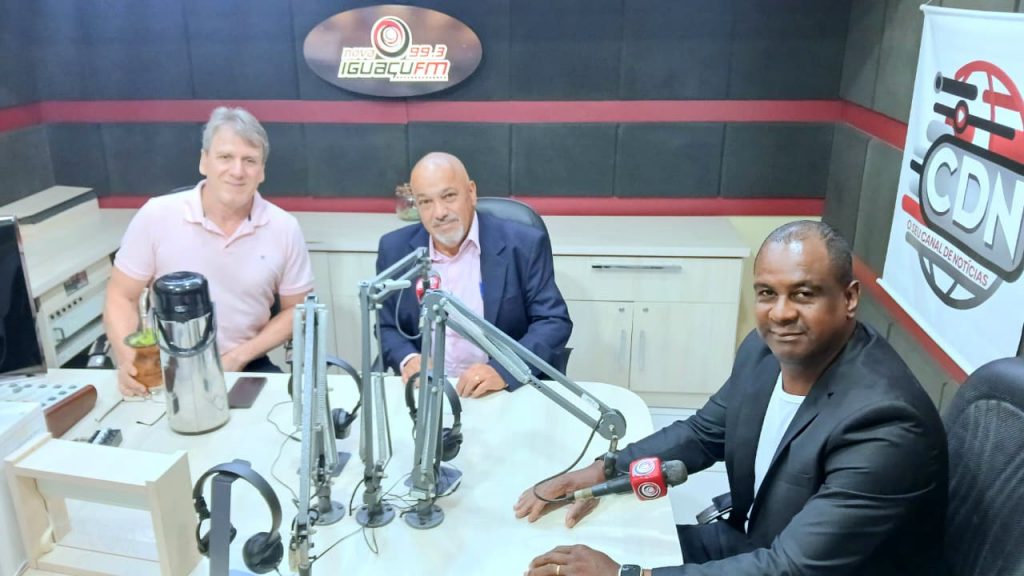 Após a solenidade no Legislativo, a comitiva sindical cumpriu agenda na Rádio Iguaçu FM 99.3. No local, o presidente Ricardo Malheiros manteve um encontro institucional com o deputado federal Pedro Westphalen (Progressistas).